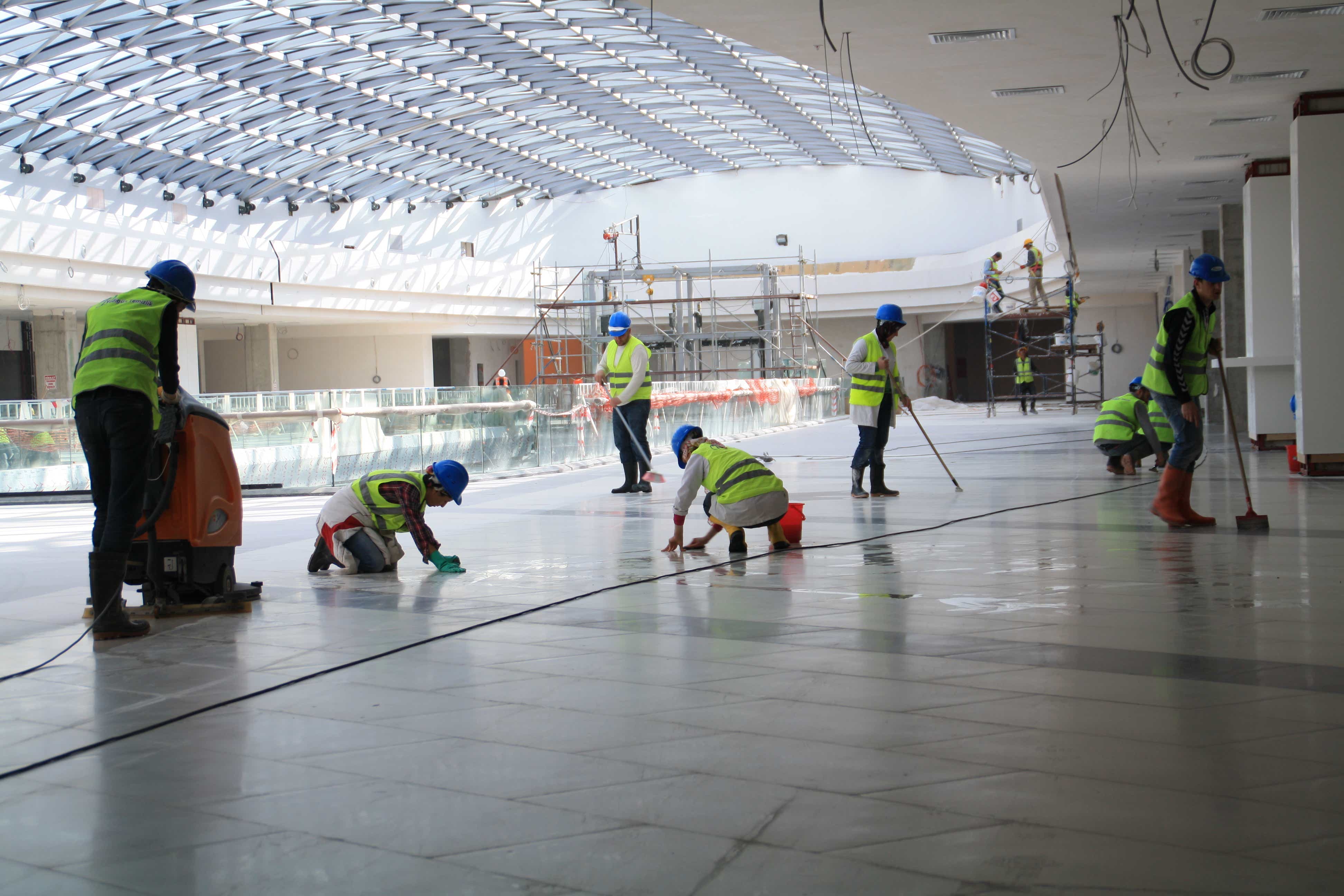 6. Tüm zemin ve yanal duvarlar kir sökücü madde ile fırçalanarak temizlenir. Kullanılan fırçanın yumuşak telli olmasına dikkat edilir,